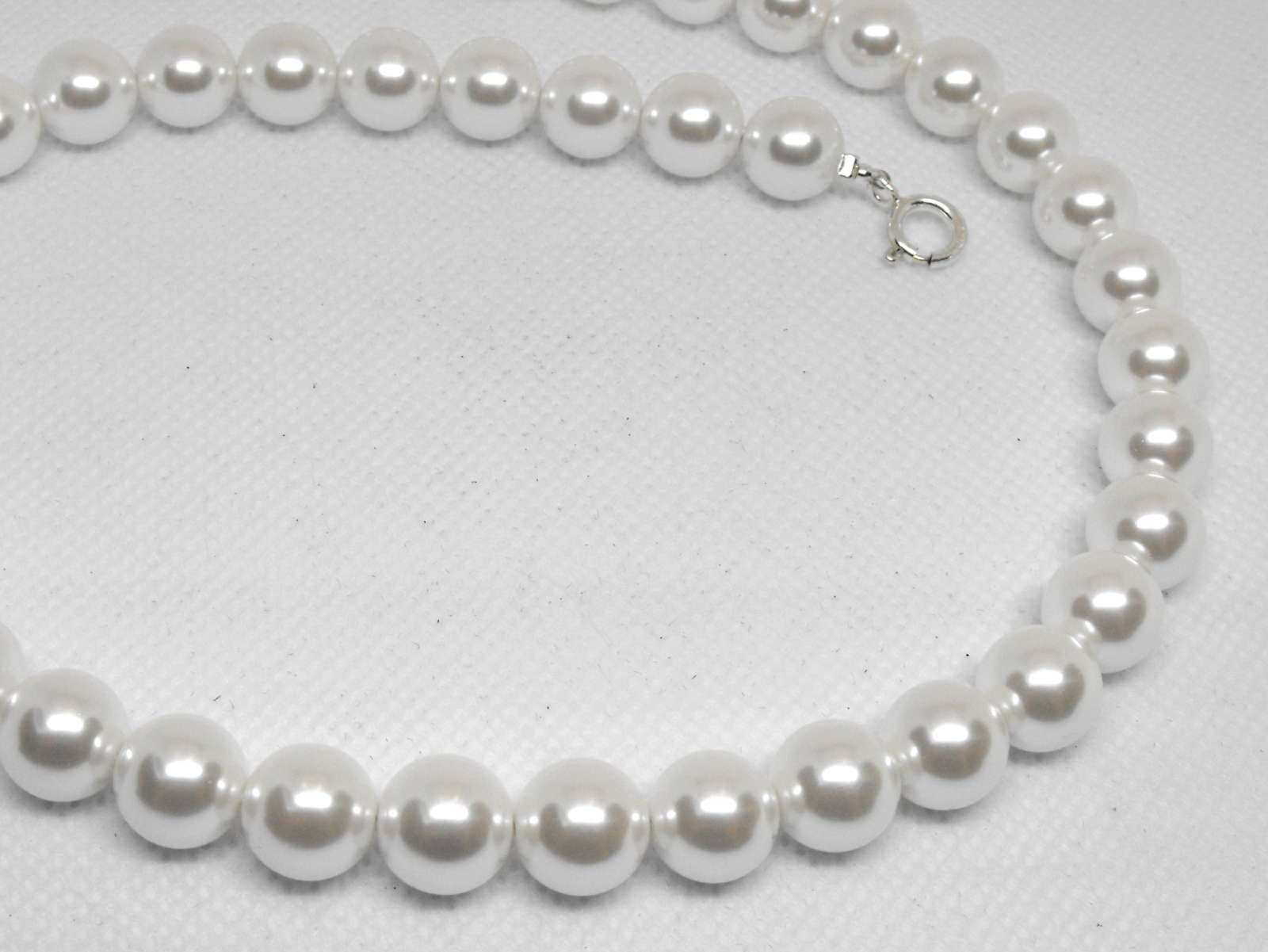 Colier elegant din perle de scoica de 10 mm diametru cu inchizatoare si lant de prelungire din argint. Perfect pentru ocazii speciale, acest colier este perfect pentru cele care apreciaza bjuteriile statement, transformand o tinuta simpla in una memorabila.